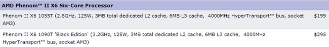AMD company today  presented only two thuban products : these are processor with the free multiplier phenom II X6 1090T Black edition with default frequency 3.2 GHz, and the processor  phenom II X6 1055T (2.8 GHz)