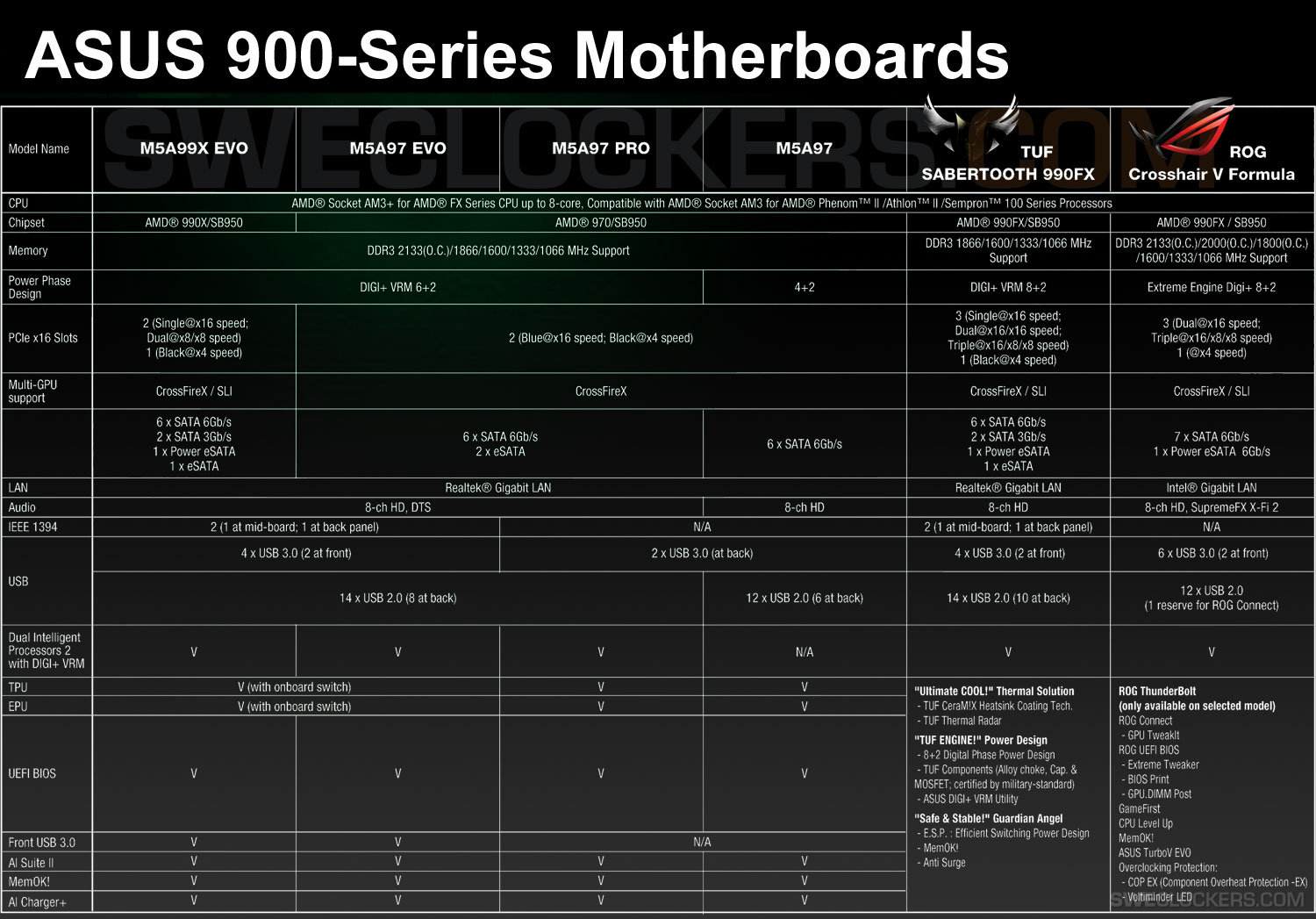 LIST OF ASUS MOTHERBOARDS FOR SOCKET AM3 PLUS PROCESSORS