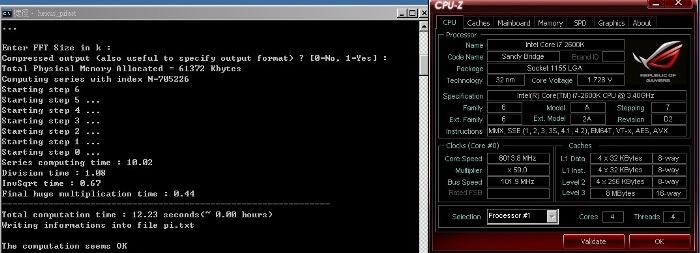 Golden processor is a concept used by overclockers to call the best processors copy . One of those processors found overclocker from Taiwan, known as NickShih. At this time, he demonstrated the overclocking results of Intel Core i7-2600K to the frequency 6017 GHz. PiFast could be executed at the frequency 6013 MHz.