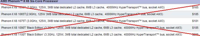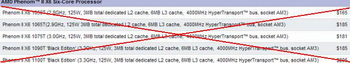 The processors phenom II X6 1065T (2.9 GHz), Phenom II X6 1075T (3.0 GHz), Phenom II X6 1090T (3.2 GHz), Phenom II X6 1100T (3.3 GHz) can be ordered before to the end of year, and deliveries will be ended to the middle of 2012. Related Products :
