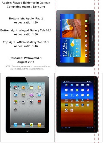 Assocaite reported that in a lawsuit against Samsung Apple presented image of tablet Galaxy Tab 10.1, which makes the device more similar to the iPad: the aspect ratio of Galaxy Tab 10.1 is 1.36 (rather close to iPad - 1,30), whereas in reality tablet Samsung,  is 1.46.