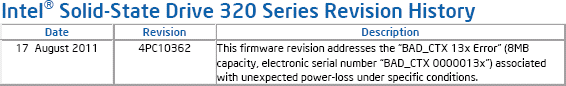 INTEL RELEASED THE UPDATED 320 SSD FIRMWARE