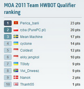In the first phase participants had to demonstrate a minimum result in Super Pi32M, then - minimum result in wPrime 1024M, - then best result in 3DMark'11. Organizers set limitations on LGA1155 motherboards and graphics cards, only MSI production , and for the first two stages the multiplier should be set to 50s.