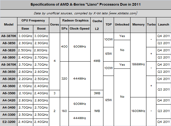 AMD will initially release the processors A8-3870K with 3.0 GHz frequency and A6-3670K, running at 2.7 GHz. Both chips have four processing cores Husky; integrated graphics in A8-3870K has 400 stream processors and 600 MHz frequency, A6-3670K in this regard and is satisfied with modest 320 stream processors with 444 MHz frequency. Llano processors with unlocked multiplier lose support to Turbo Core technology. Related Products :