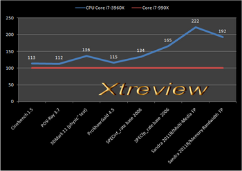 According to a certain Intel document, CPU Core i7-3960X (six cores, 3.30 GHz, 15 MB cache in the third level), the forthcoming high end chip for LGA 2011 platform is much faster than its predecessor Core i7-990X (six cores, 3.46 GHz, 12 MB cache). Approximate comparison is as follows (indicated by the advantage of Core i7-3960X as a percentage):