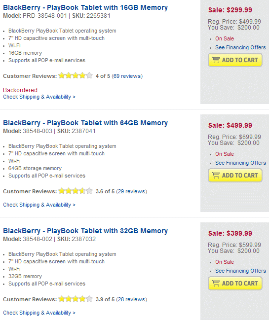 Thus, the price of basic version PlayBook with 16 GB memory is $ 299, two other version will require additional $ 100 for each doubling of the SSD. Related Products :