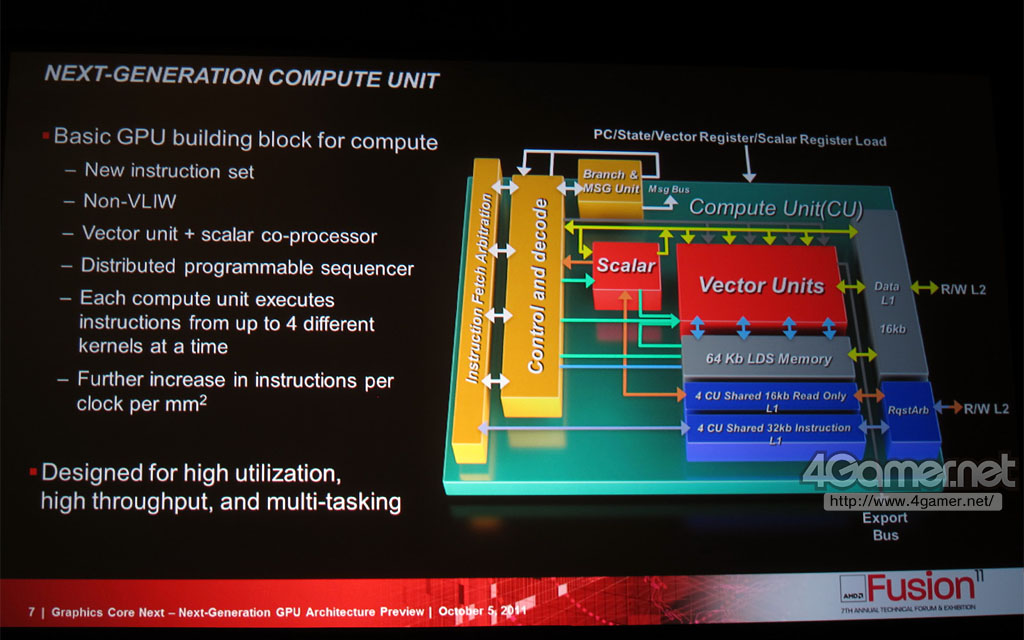At the seventh annual Technical Forum and Exhibition AMD Fusion 11 in Taipei, AMD disclosed some details about the graphic accelerators Radeon HD 7000 , and more specifically - the architecture of Next Generation Core (NGC), which will replace older models in VLIW4 segment (Radeon HD 7900) .