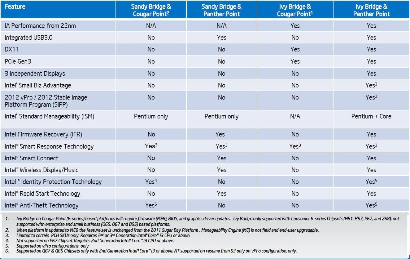 There is some limitation setting a new processor Ivy Bridge in motherboard chipset based on old generation Cougar Point. Support for DirectX 11 and PCI Express 3.0 by the processors is guaranteed, but work with three independent displays is not possible .Also there is not support for Intel Firmware Recovery, Intel Smart Connect, Intel Wireless Display, Intel Identity Protection, Intel Rapid Start and Intel Anti-Theft. Smart Response technology, in most cases will be maintained . Related Products :