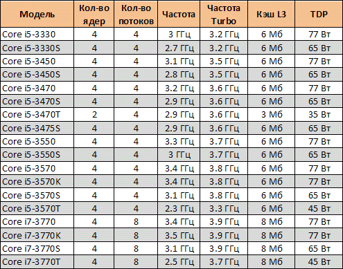 Formal improvement of frequency potential compared to Sandy Bridge will not happen, the older processor Ivy Bridge will operate at default frequency of 3.5 GHz and overclocked in the Turbo mode up to 3.9 GHz. The TDP level , however, will be reduced from 95 to 77 w. Progress in this area is more pronounced in the performance of processors with the suffixes T and S, which will increase in the default frequency by 100 to 300 MHz. The presence of letters T in the processor notation will be talking about the TDP level not more than 45 w in the case of quad-core model, and no more than 35 watts in the case of dual-core model. Letter S will provide a TDP level not more than 65 Watts.