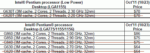 Yesterday also started the removal from production of Core i5-2300 (2.8 GHz), Core i3-2100T (2.5 GHz), Pentium G840 (2.8 GHz), Pentium G620 (2.6 GHz) and Pentium G620T (2.2 GHz). Order of these processors can be up to 29 June next year, supply of OEM-versions will be accepted until 7 December. Related Products :