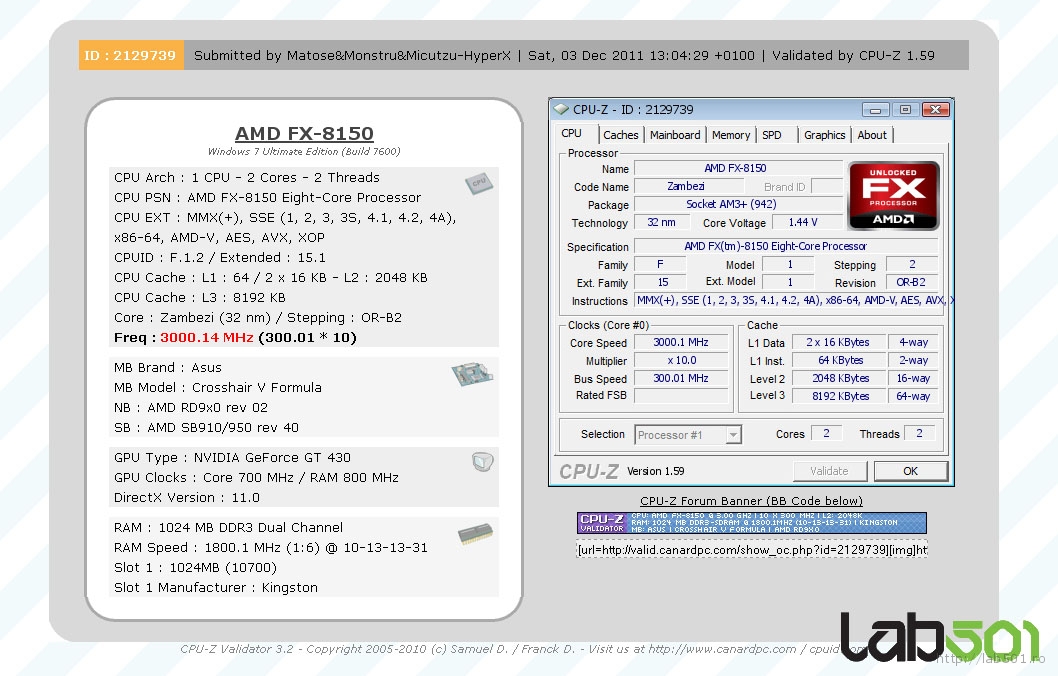 The team Lab501 achieved a record with CAS-10 latency, but incidentally in the course of their experiments enthusiasts established two world records! The mode DDR3-3275 CAS-latencies 8 and DDR3-3479 CAS-latencies 9.