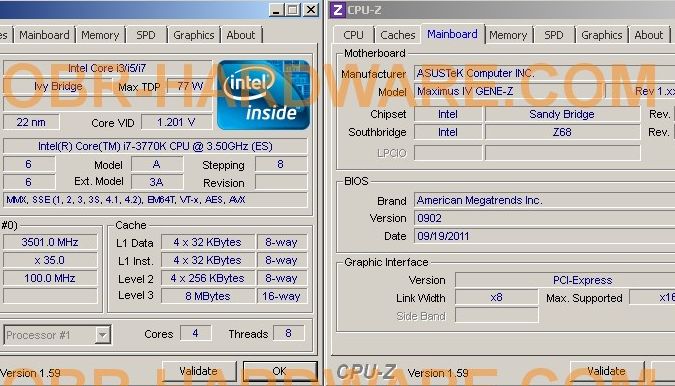 Recently we published the photo of the engineering model Haswell , yesterday appeared the screenshots of Core i7-2600K (3.4 GHz) and Core i7-3770K (3.5 GHz).