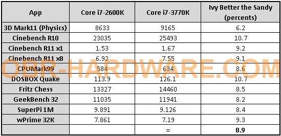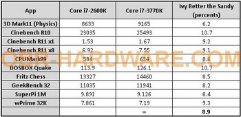 Summarizing the testing results, Core i7-3770K was faster than Core i7-2600K in the given applications set by 8.9% on average. We should not forget that the first works on a slightly higher frequency, and it would be logical to compare it with the Core i7-2700K (3.5 GHz). Related Products :