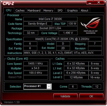 The Dutch overclocker Viss bought the processor Core i7-3930K (L149B708). With the use of phase transition with all active core , the limit clock was at 5400 MHz (the multiplier 54x, the bus frequency 100 MHz , voltage 1.496 volts):
