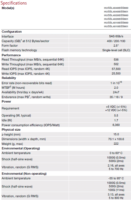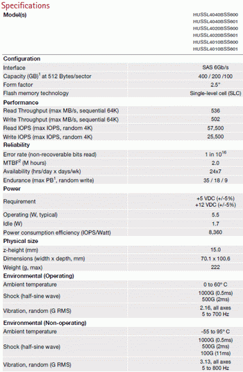 The product is called Ultrastar SSD400S.B an SSD form factor 2.5 SAS drives 6 Gb / s based on 25 nm SLC memory made by Intel.