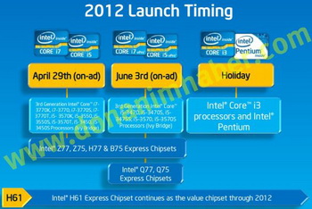 According to this illustration, the release of chipsets Intel Z77, Z75, H77 and B75 will be held on 29 April , then will come out most of Core i7 and Core i5 range, relating to the generation Ivy Bridge.