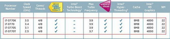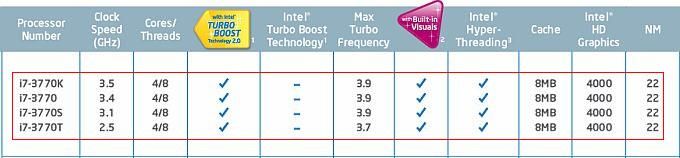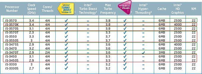 We surrounded by a red frame in the tables Ivy Bridge processors models, which will be released on 29 April. Green border separated models will be presented only on 3 June.