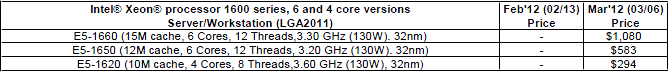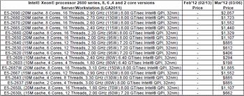 Yesterday, Intel announced the long-awaited server processor generation Sandy Bridge-EP, Xeon E5-26xx . The processors are manufactured on 32 nm technology, support four-channel memory, with up to eight physical cores with support for Hyper-Threading, equipped with a cache in the third level of up to 20 MB. The rate of information exchange via QPI up to 8 gigahertz per second. The TDP level not more than 130-150 watts, it uses the design concept LGA 2011.