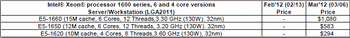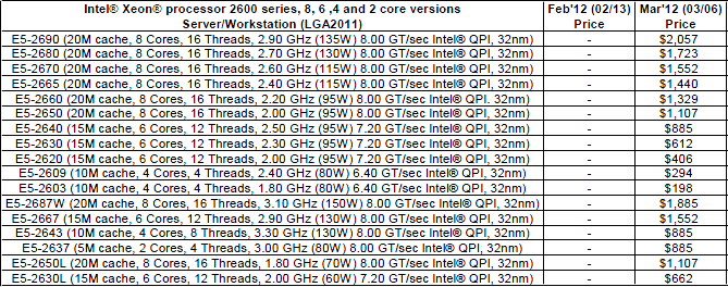 Prices and specifications can be found in the official price list for Intel: