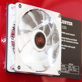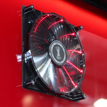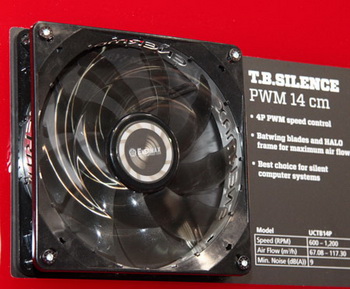 The range of fans, Enermax TBSilence 14 cm with adjustable speed.  Adjustment - 600-1200 r / min.  In this case the fan varies from 67 to 117 cubic meters of air per hour.  The fan runs at minimum speed, almost inaudible - noise level is less than 9 dB.