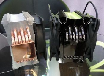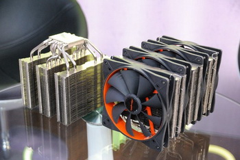 The product has eight heat-pipes that are formed by three sections of aluminum fins. Â The design is blown with four 140-millimeter fans.