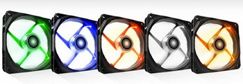 Rotation speed of 120 mm fan is 1200 ± 20% / min. Â At the same time they create an air flow of 110 m 3 / h, and the noise level does not exceed 26.8 dBA. Â Fan price is $ 13, with back light - $ 15. Â The buyer can choose from five back-light colors: white, blue, orange, green or red.