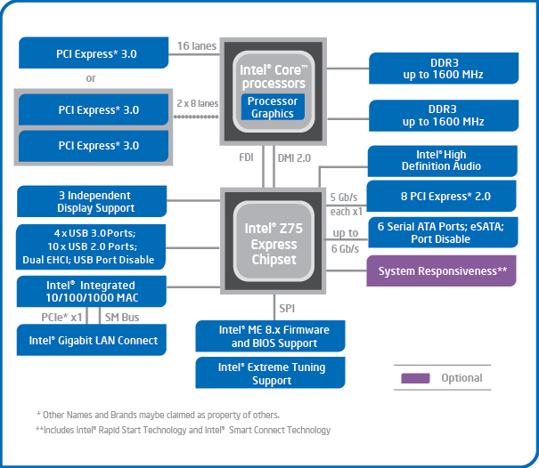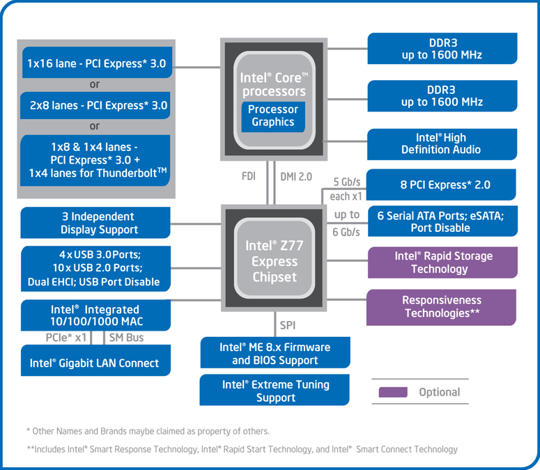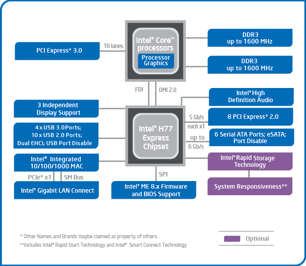 Schematic structure of H77, Z75 and Z77 chipsets can be studied by the following diagrams.