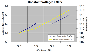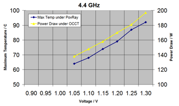 AnandTech conducted detailed studies of energy dependence and CPU core voltage temperature.  Temperature measurements were made using the tool PovRay, power consumption was measured by OCCT.