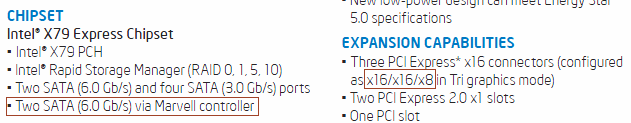 First , DX79SR motherboard has increased number of available SATA-600 ports from two to four, this is due to the discrete controller Marvell SE9128. Number of USB 3.0 ports on the rear panel is also increased from two to four pieces.