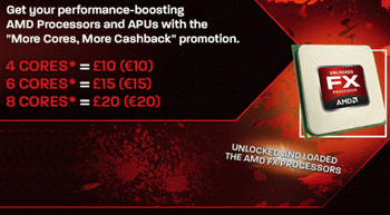 From the eleventh of June to 31 August selected buyers of AMD in the UK, Germany, Austria, Finland, France, Greece, Italy, Netherlands, Norway, Portugal and Sweden are able to recover some of the money spent. Participating stores are willing to pay the shares of AMD Core owners twenty euros for a model with eight cores, 15 euros for a model with six cores, and 10 euros for a model with four cores.