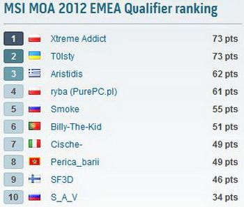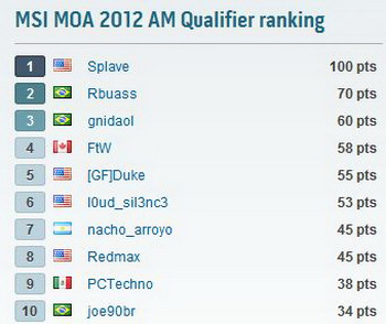 Three U.S. Finalists determined in the period from 13 April to 11 May. As in the other qualifying stages MOA 2012, participants had to get the best result in the benchmark 3DMark 2011, 3DMark 2003 and Super Pi 32M : Splave, Rbuass and gnidaol.
