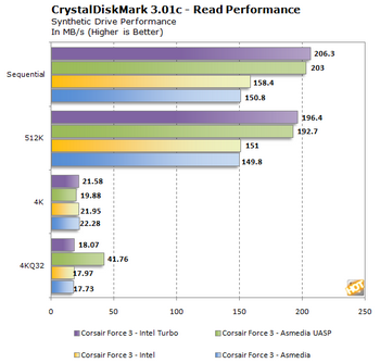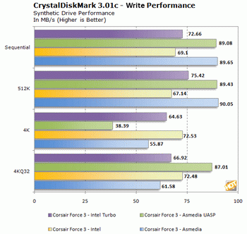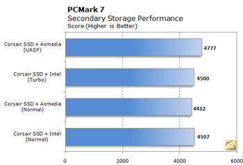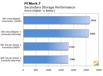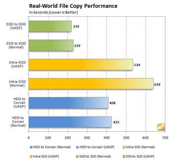 Associate noted all the key features of UAS protocol, and studied on the example of motherboard ASUS P8Z77V with USB 3.0 Asmedia 1042 controller.  The study involved three drives that are connected through a docking station with USB 3.0 support.  Were tested: SSD Corsair Force 3 60GB and Western Digital hard drive line Velociraptor 1TB capacity (VC) and a similar capacity Caviar Green (CG).