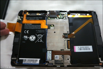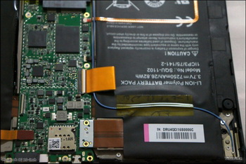 In particular, there is a slot for SIM-card, indicating the presence of an integrated wireless network adapter, and lithium-ion battery with 7250 mA · h