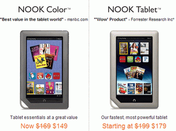 Barnes & Noble reduced the price of Nook device by $ 20 or $ 50, depending on the model. The device Nook Color, which is targeted between electronic book and tablet has fallen in price from $ 169 to $ 149. Nook Tablet Tablet PCs can be purchased for $ 199 (16GB) and $ 179 (8GB), instead of $ 249 and $ 199 respectively.