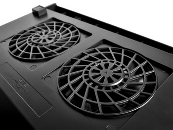 Cryo V60 is made of plastic (size 270 x 375 x 45 mm) and is designed for 15-inch laptops. The main distinguishing feature is the two 75-mm fans.
