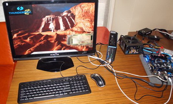 During an early prototype demonstration, attended by our colleagues, a desktop system based on Ivy Bridge processor with integrated graphics passed first 3DMark'06 test without the assistance of discrete solutions, and then to the port Thunderbolt was connected external graphics card Radeon HD 6700 class. The screen went blank for a few seconds, the card has been recognized, and managed to run the benchmark without rebooting. Frames rate increased from 28 to 89 per second .