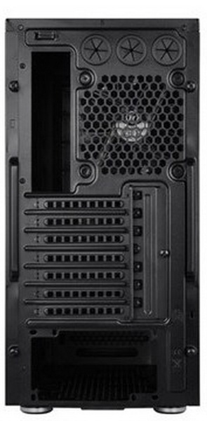 The case is equipped with a 200-mm fan with blue LED lights and speed 600 rpm (13 dBA), which pumps cold air. There is also 120-mm fan on the rear panel (1,000 rpm, 16 dBA). Also in the lower part there is a room for one 120-mm fan.
