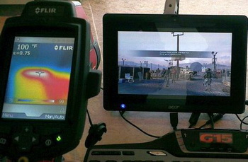 So, the tablet is based on 40 nm processor Hondo with two Bobcat cores and graphics engine generation with support for DirectX 11 : The game Call of Duty 4, producing 30 frames per second. Tablet based on Intel Atom processor have the half of the speed. Moreover, the tablet case -based on Hondo heated only to 37.7 degrees Celsius, and competitor was warmed to 43.88 degrees Celsius.