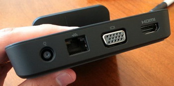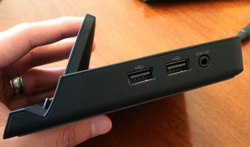 The tablet provides USB, HDMI, D-Sub, Ethernet and audio line output ports.