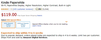 Waiting periods for Kindle Paperwhite increase (2012-10-04)