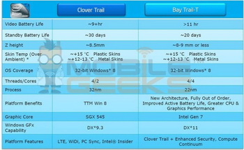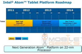 In 2013, Intel will offer the tablet platform Clover Trail , which was officially launched one month before the release of Windows 8. In 2014, will be released a single-chip system with code name Valleyview-T (Platform Bay-Trail-T).
