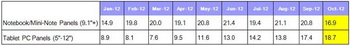 NPD DisplaySearch Experts found that in this quarter tablet sales in the U.S. in terms of indicators surpass laptops. In support of this prediction, they publish statistics of monthly LCD panels sales, which are used in the production of tablets with screen sizes from 5 " to 12" laptops or different sizes (from 9.1 "and higher).