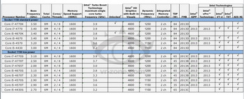All CPU contain dual-channel DDR3-1600 memory and graphics engine Intel HD Graphics 4600, the frequency varies from 1100 to 1250 MHz.