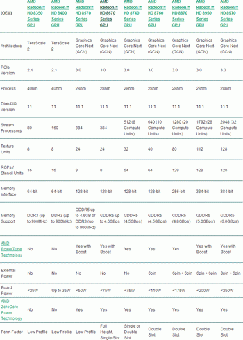The OEM-versions of Radeon HD 8xxx were, for the most part, members of the renamed Radeon HD 7xxx! The new card are only Radeon HD 8670 and 8570 , and the Radeon HD 8400 and Radeon HD 8350 are once again 40-nm graphics solutions five thousandth series with DirectX 11 support.