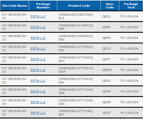 Ivy Bridge-EX processors with 15 cores can be found in the database on Intel website .