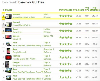 The graphics core Vivante - is the choice of this fresh evidence of Chinese device . The author presented a screenshot of test results Rightware Basemark GUI series graphics cores, including core Vivante occupy the first three places.
