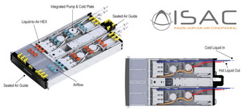 ISAC main feature is that all the heat energy released by the server go to the coolant .  Air circulating inside the server does not leave the body of the computer and cooled in a special heat exchanger connected to a pipe cooling system.