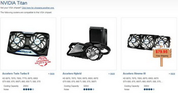 Now, Arctic in the list of compatible GeForce GTX Titan cooling systems, mentions not only the Accelero Hybrid, and Accelero Twin Turbo II , and Accelero Xtreme III . Note that the first of these cooling systems designed only for video cards with heat emission level not exceeding 250 watts.