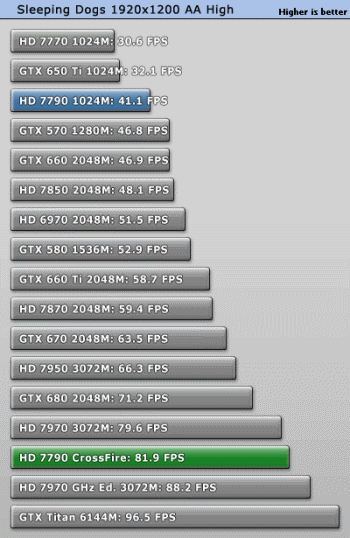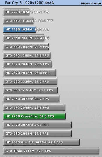 Traditionally, popular games can be divided into two categories: one CrossFire mode gives a significant boost to performance, but other adding a second graphics card brings a minimal effect. In the first case, a pair of Radeon HD 7790 reach out to older cards, Radeon HD 7950 and Radeon HD 7970.