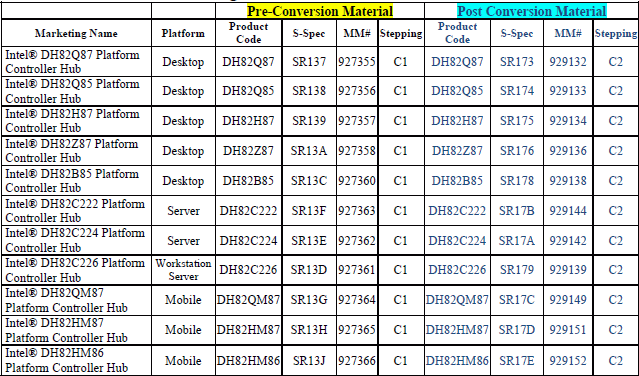 The transition to a new stepping is scheduled for desktop chipset Intel Q87, Q85, H87, Z87, B85, as well as mobile Intel QM87, HM87 and HM86. There will be also transferred to the C2 stepping chipsets for desktops and servers: Intel C222, C224 and C226.